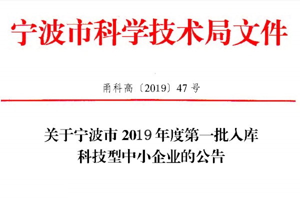 科技型中小企業,(甬科高[2019]47號文件);